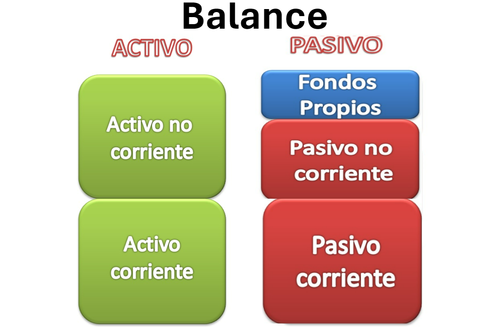 Está compuesto por TRES partes principales: el Activo (que se representa a la izquierda) y el Patrimonio Neto y Pasivo (que se representan a la derecha), estas partes deben estar equilibradas, es decir, la suma del Activo debe ser igual a la suma del Pasivo más el Patrimonio Neto.